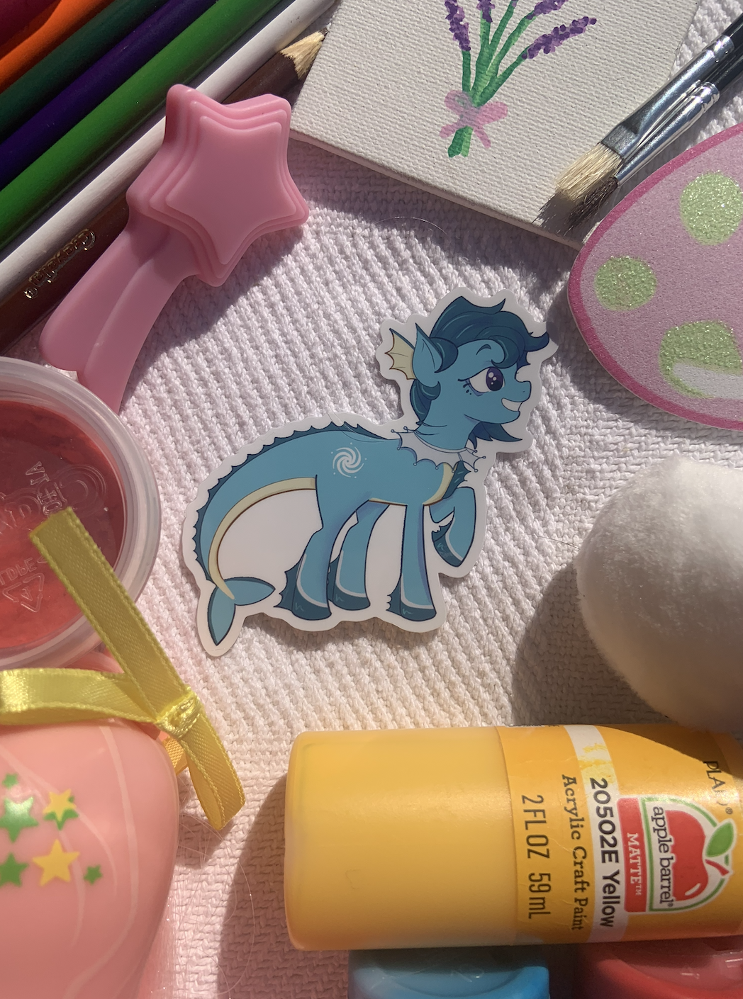 A glossy 3″x3″ sticker of a pony that looks like a Vaporeon.